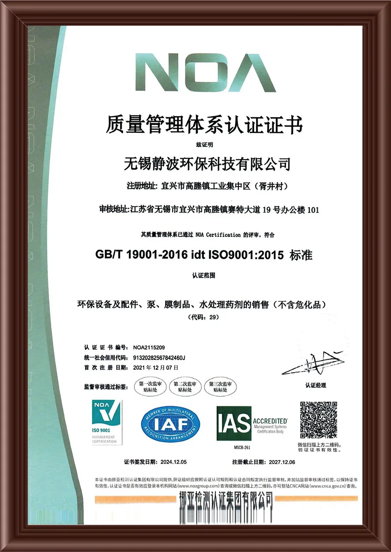 Společnost usiluje o přežití prostřednictvím kvality a vývoje prostřednictvím nových produktů. Od technologie, dodávky, kontroly kvality až po instalaci a uvedení do provozu celá společnost dodržuje předpisy pro certifikaci kvality a zavádí vícevrstvou, průřezovou síť řízení kvality. Technické oddělení je rozděleno do čtyř odborných skupin: zařízení, proces, elektro a automatické řízení. Tyto skupiny spolupracují na dokončení návrhu každého projektu, přičemž k dokončení všech technických výkresů a dokumentů používají konstrukční systém podporovaný CAD. To zajišťuje standardizovanější a rozumnější návrhy a poskytuje lepší technický základ pro zajištění kvality produktu. Obstarávání různých surovin a pomocných materiálů společně řeší oddělení zásobování a oddělení kontroly kvality surovin a pomocných materiálů. Naše společnost formulovala kompletní soubor požadavků a metod kontroly pro různé suroviny a pomocné materiály a je vybavena příslušným kontrolním zařízením. Striktně dodržujeme standard "ZBJ98004-87" pro vstupní kontrolu surovin pro zařízení na úpravu vody, jasně definujeme přívodní kanály, zavádíme systém evidence a bráníme vstupu padělaných, nestandardních a vadných materiálů a dílů do výrobního procesu. Suroviny jsou skladovány striktně podle jejich fyzikálních a chemických vlastností, přičemž speciální materiály jsou skladovány ve skladu speciálních materiálů, aby se předešlo problémům s kvalitou způsobenými vnějšími faktory prostředí během skladování a tím byla zajištěna kvalita produktu.